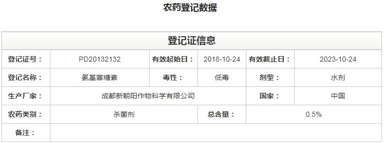 據(jù)了解,截止2018年12月,氨基寡糖素在中國(guó)農(nóng)藥信息網(wǎng)登記信息共計(jì)77條,有效成分含量從0.5%-5%不等,主要以殺菌劑為主。而目前國(guó)內(nèi)將氨基寡糖素定位在防治根結(jié)線蟲上的僅有兩家企業(yè),最早登記的是成都新朝陽(yáng)作物科學(xué)有限公司。新朝陽(yáng)0.5%氨基寡糖素水劑(茛互)是國(guó)內(nèi)第一個(gè)生物源根結(jié)線蟲防治合劑。